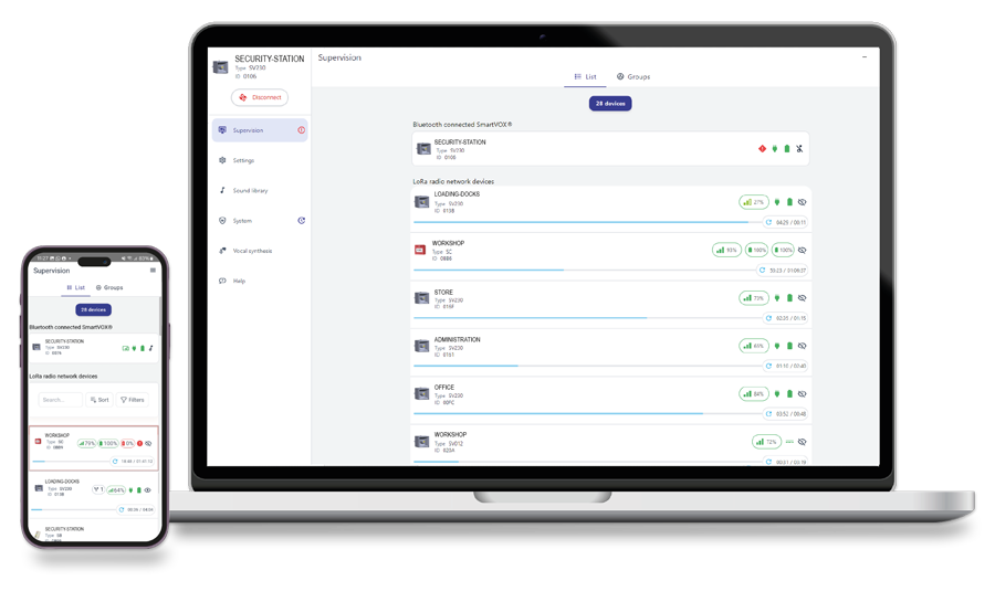Chaque avertisseur sonore et vocal radio du réseau peut appartenir à un ou plusieurs des 16 groupes disponibles, afin d’alerter de manière spécifique dans chaque zone ou bâtiment du site à sécuriser.